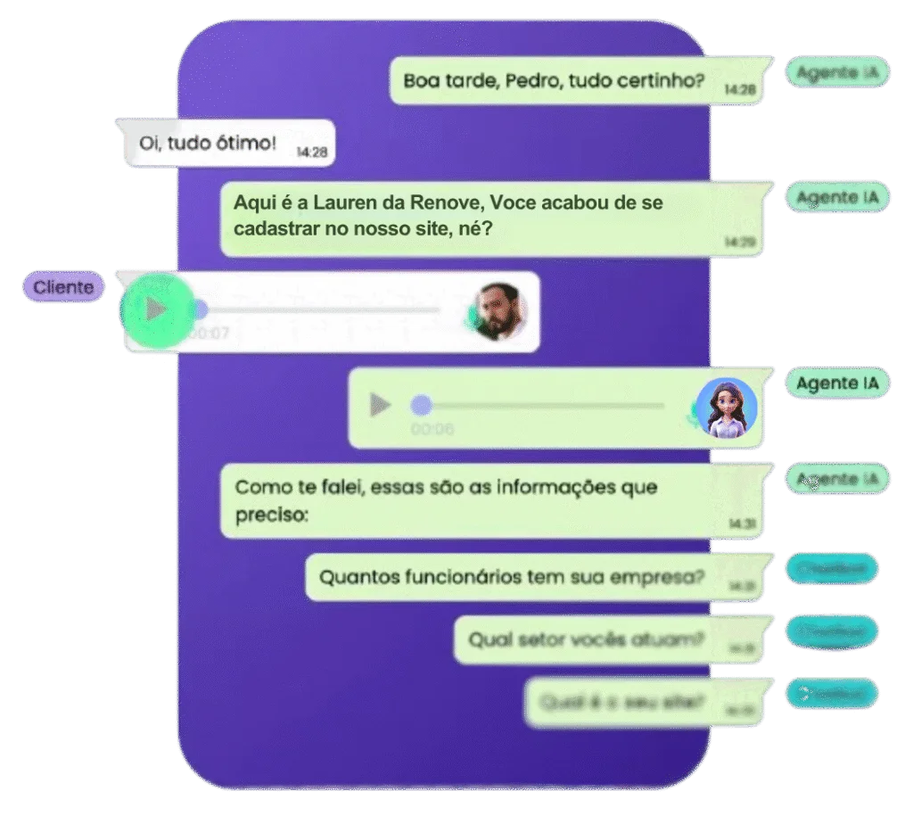Não. A IA potencializa sua equipe. Ela cuida das respostas repetitivas, orçamentos e acompanhamentos automáticos, enquanto seus vendedores se concentram no que realmente importa: fechar mais vendas.